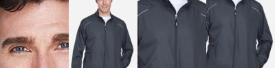 3.9 oz./yd²/132 gsm (US), 6.5 oz./L yd (CA) Shell: 100% polyester twill, with water resistant and cire finish Shell Lining; Polyester taffeta Liner Jacket: 7.7 oz Polyester anti-pill fleece Storm flap with hidden snaps at top and bottom Inside placket; roll-away hood; adjustable cuffs with tabs Lower concealed pocket with zippers and reflective toggles Audio port access through inside left pocket Thermal retention shockcord at hood and drop back hem Reflective piping at shoulder yoke and upper back panels Inside placket on liner Center-front reversible zipper Lower concealed pockets with autolock zippers Audio port access through inside left pocket